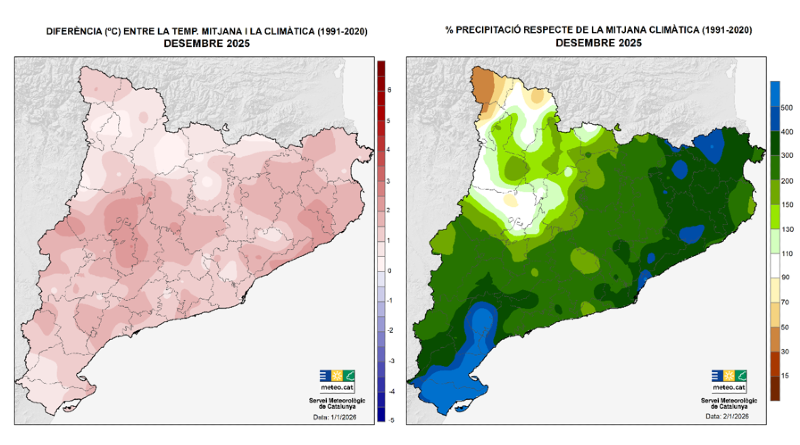 El desembre de 2025 ha estat càlid i molt plujós i consolida un 2025 entre els anys més càlids i