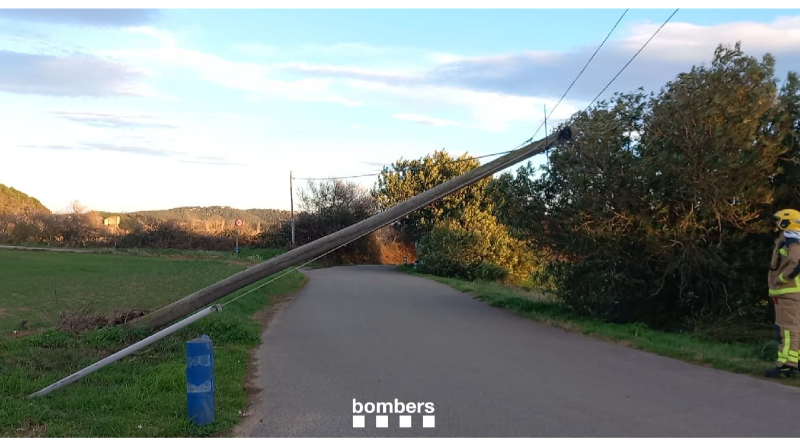 – A Ulldecona (Montsià), per la caiguda d’una línia de mitja tensió a l’alçada dels Anolls, sense afectació forestal.