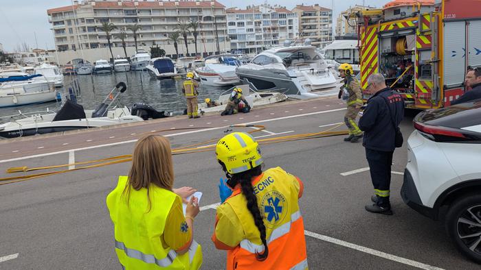 Simulacre d’incendi en una embarcació amb vessament de carburant a la Marina d’Empuriabrava