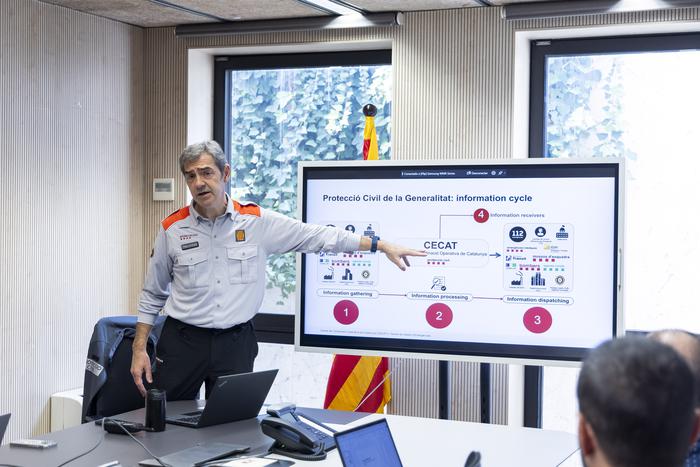 Per la seva banda, el tècnic de Protecció Civil Joan Muñoz ha explicat l’estructura operativa del CECAT i les seves funcions com a centre de coordinació de les emergències a Catalunya. També les eines tecnològiques de què disposa la sala per a la gestió dels diferents riscos.